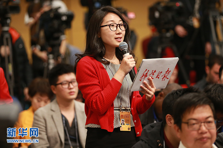 3月11日,十二屆全國人大五次會議新聞中心舉行記者會,邀請科技部部長萬鋼、秘書長徐建培就“2016年創(chuàng)新驅(qū)動發(fā)展戰(zhàn)略實施進展成效和2017年重點工作”的相關(guān)問題回答中外記者的提問。圖為科技日報記者提問。新華網(wǎng)/中國政府網(wǎng) 王健 攝