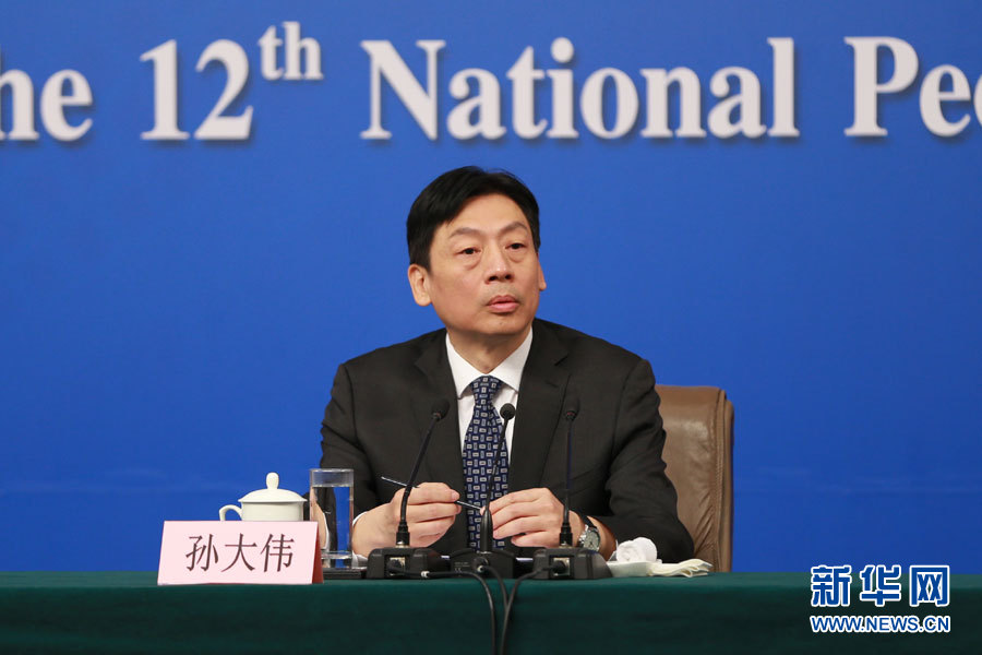 3月14日,十二屆全國(guó)人大五次會(huì)議新聞中心舉行記者會(huì),邀請(qǐng)國(guó)家質(zhì)檢總局局長(zhǎng)支樹平、副局長(zhǎng)兼國(guó)家認(rèn)證認(rèn)可監(jiān)督管理委員會(huì)主任孫大偉、國(guó)家標(biāo)準(zhǔn)化管理委員會(huì)主任田世宏就“質(zhì)量提升”的相關(guān)問(wèn)題回答中外記者的提問(wèn)。圖為國(guó)家質(zhì)檢總局副局長(zhǎng)兼國(guó)家認(rèn)證認(rèn)可監(jiān)督管理委員會(huì)主任孫大偉。新華網(wǎng)/中國(guó)政府網(wǎng) 傅義洲 攝