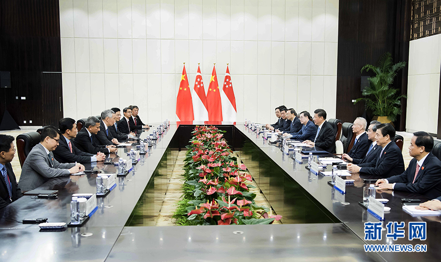 習(xí)近平指出,中新關(guān)系發(fā)展同中國(guó)改革開(kāi)放息息相關(guān)。當(dāng)前,中國(guó)特色社會(huì)主義進(jìn)入新時(shí)代,新加坡正在實(shí)施“未來(lái)經(jīng)濟(jì)發(fā)展戰(zhàn)略”。雙方要結(jié)合新形勢(shì)新特點(diǎn),對(duì)雙邊關(guān)系和務(wù)實(shí)合作作出新的戰(zhàn)略謀劃和頂層設(shè)計(jì)。雙方要推進(jìn)政府間大項(xiàng)目合作。要加強(qiáng)“一帶一路”框架內(nèi)合作,繼續(xù)打造好兩國(guó)共建的“南向通道”,將“一帶”和“一路”更好連接起來(lái)。中方愿同包括新方在內(nèi)東盟國(guó)家加強(qiáng)溝通協(xié)調(diào),實(shí)現(xiàn)“一帶一路”倡議同東盟發(fā)展規(guī)劃更好對(duì)接,構(gòu)建更為緊密的中國(guó)-東盟命運(yùn)共同體,希望新加坡發(fā)揮積極建設(shè)性作用。