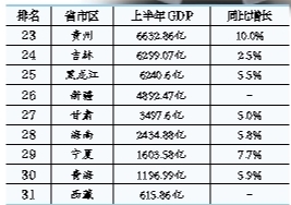 29省區(qū)市亮上半年GDP成績單 重慶放緩遼寧回暖