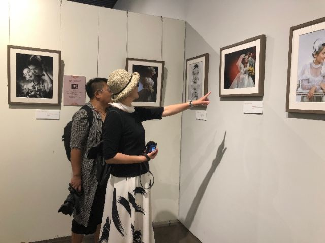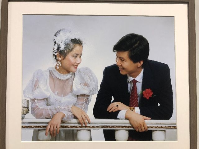 展廳內(nèi)的一幅新舊婚照對比圖引起了觀眾們的注意,作品中左邊的照片是一對新人于1980年拍攝的婚照,右邊是這對夫婦于今年以同樣角度、同款風(fēng)格拍攝的一張婚照。對比之下,雖然曾經(jīng)的“新人”容顏漸老,但幸福依舊。