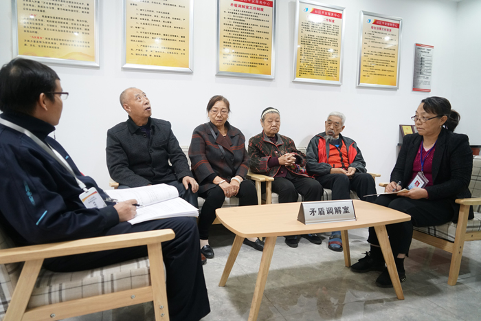 社區(qū)“順順吧”的街道干部、法院民警、駐點(diǎn)律師、街道民調(diào)員主動(dòng)上門,通過多方調(diào)查了解,多次上門幫老人召開家庭會議,從法律、情理等多角度耐心勸說。馮婆婆一家最終達(dá)成協(xié)議,每位子女公平分配,且共同承擔(dān)老人的贍養(yǎng)義務(wù),一家人重歸于好。