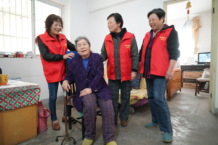 和王美華老人一樣,72歲的蔣桂梅也是一名獨(dú)居老人。經(jīng)歷喪夫之痛的她搬進(jìn)新居后,陌生的環(huán)境、生疏的鄰里,讓她十分不適應(yīng),經(jīng)常閉門不出?!疤焯烨瞄T組”多次上門探望后,她也決定加入志愿者隊(duì)伍。從“被敲門”到如今青和居第一網(wǎng)格黨支部書記,蔣桂梅說自己“活得更有意義”。