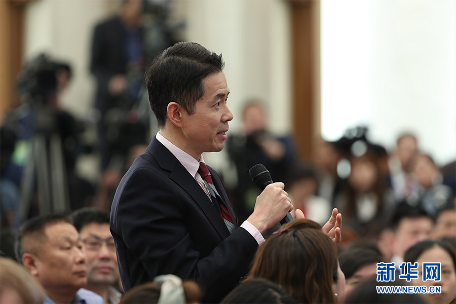 3月4日,十三屆全國人大一次會議在人民大會堂新聞發(fā)布廳舉行新聞發(fā)布會,由大會發(fā)言人張業(yè)遂就大會議程和人大工作相關(guān)的問題回答中外記者的提問。圖為CNN記者提問。新華網(wǎng)/中國政府網(wǎng) 翟子赫 攝