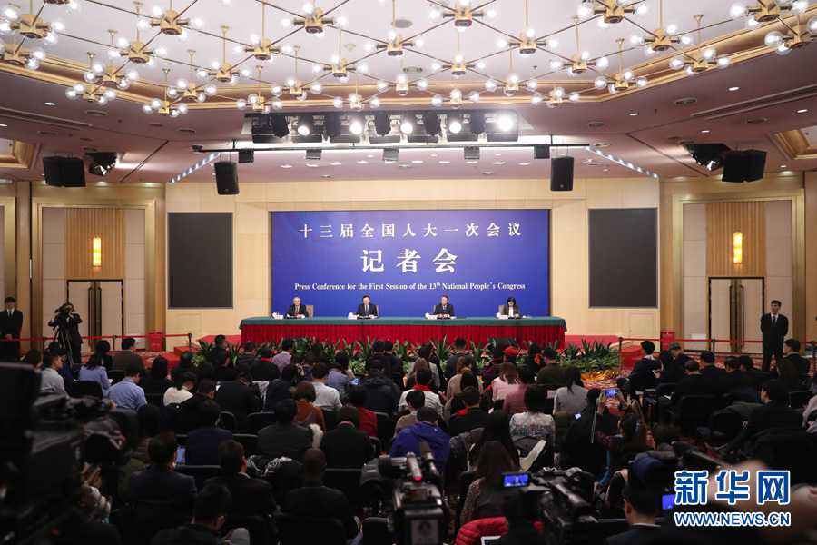 十三屆全國人大一次會議新聞中心于3月7日在梅地亞中心多功能廳舉行記者會,邀請農(nóng)業(yè)部部長韓長賦,農(nóng)業(yè)部新聞發(fā)言人、辦公廳主任潘顯政就“實施鄉(xiāng)村振興戰(zhàn)略 推動農(nóng)業(yè)轉(zhuǎn)型升級”的相關(guān)問題回答中外記者的提問。圖為記者會現(xiàn)場。新華網(wǎng)/中國政府網(wǎng) 陳杰 攝
