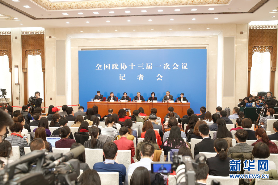 全國政協十三屆一次會議3月8日15:00在人民大會堂新聞發(fā)布廳舉行第二場記者會,邀請中央財經領導小組辦公室副主任楊偉民,中國進出口銀行董事長、黨委書記胡曉煉,農業(yè)部原副部長陳曉華,全國工商聯副主席、清華大學經濟管理學院院長錢穎一,中國中化集團有限公司黨組書記、董事長寧高寧就推動經濟高質量發(fā)展回答記者提問。圖為記者會現場。新華網/中國政府網 翟子赫 攝?