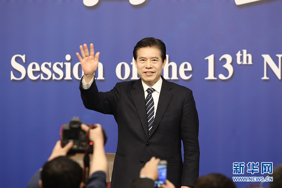 十三屆全國人大一次會議新聞中心3月11日10時(shí)在梅地亞中心多功能廳舉行記者會,邀請商務(wù)部部長鐘山、副部長兼國際貿(mào)易談判副代表王受文、副部長錢克明就“推動形成全面開放新格局 推動商務(wù)事業(yè)高質(zhì)量發(fā)展”相關(guān)問題回答中外記者提問。圖為商務(wù)部部長鐘山。新華網(wǎng)/中國政府網(wǎng)?陳杰?攝?