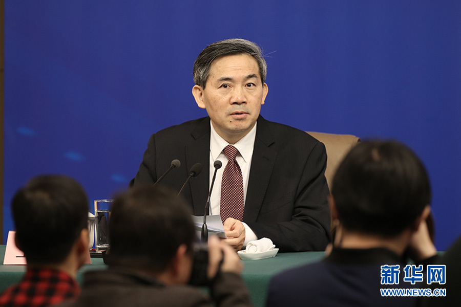 十三屆全國人大一次會議新聞中心3月11日10時在梅地亞中心多功能廳舉行記者會,邀請商務(wù)部部長鐘山、副部長兼國際貿(mào)易談判副代表王受文、副部長錢克明就“推動形成全面開放新格局 推動商務(wù)事業(yè)高質(zhì)量發(fā)展”相關(guān)問題回答中外記者提問。圖為主持人何紹仁。新華網(wǎng)/中國政府網(wǎng) 陳杰 攝?