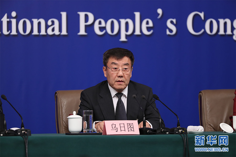 圖為財經(jīng)委副主任委員烏日圖回答記者提問。新華網(wǎng)/中國政府網(wǎng) 翟子赫 攝