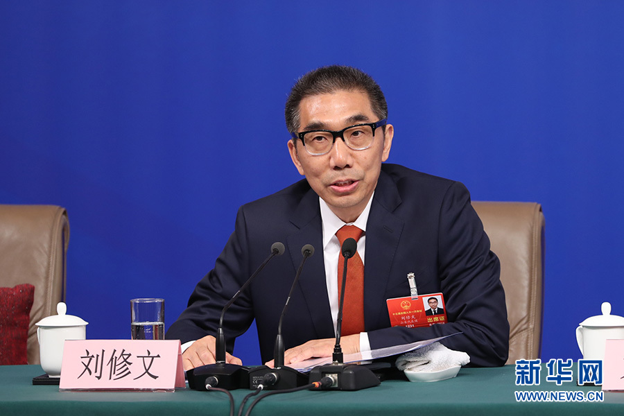 十三屆全國人大一次會議新聞中心于3月12日15時在梅地亞中心多功能廳舉行記者會,邀請十二屆全國人大財經(jīng)委副主任委員尹中卿、教科文衛(wèi)委副主任委員吳恒、環(huán)資委副主任委員袁駟、內(nèi)司委委員鄭功成,全國人大常委會預算工委副主任劉修文、常委會辦公廳秘書局巡視員傅文杰就“人大監(jiān)督工作”相關問題回答中外記者提問。圖為全國人大常委會預算工委副主任劉修文回答記者提問。新華網(wǎng)/中國政府網(wǎng) 陳杰 攝?