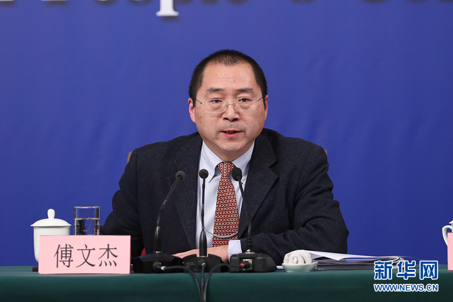 十三屆全國人大一次會(huì)議新聞中心于3月12日15時(shí)在梅地亞中心多功能廳舉行記者會(huì),邀請(qǐng)十二屆全國人大財(cái)經(jīng)委副主任委員尹中卿、教科文衛(wèi)委副主任委員吳恒、環(huán)資委副主任委員袁駟、內(nèi)司委委員鄭功成,全國人大常委會(huì)預(yù)算工委副主任劉修文、常委會(huì)辦公廳秘書局巡視員傅文杰就“人大監(jiān)督工作”相關(guān)問題回答中外記者提問。圖為常委會(huì)辦公廳秘書局巡視員傅文杰回答記者提問。新華網(wǎng)/中國政府網(wǎng) 陳杰 攝