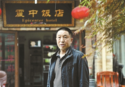 對(duì)于震中飯店來(lái)說(shuō),這樣幾百人聚在一起的畫(huà)面已經(jīng)許久沒(méi)有出現(xiàn)。2008年5月12日,曠古未見(jiàn)的地震幾乎吞噬了整個(gè)映秀。剛剛在保險(xiǎn)公司辦完事的楊云青,在逃出保險(xiǎn)公司大門(mén)后,趕緊趕往孫子所在的學(xué)校。在滿操場(chǎng)彌漫的白灰中,他和幾個(gè)家長(zhǎng)一起徒手挖出了幾個(gè)孩子,第二天清晨,他又從電廠借來(lái)吊車,把車開(kāi)進(jìn)了小學(xué)。一連9天,他始終和消防隊(duì)員一起奮戰(zhàn)在救援第一線,最終成功救出12個(gè)人。此后,楊云青“映秀好人”的名聲傳播開(kāi)來(lái)。他所經(jīng)營(yíng)的震中飯店,也一度成為大家爭(zhēng)相參觀的景點(diǎn)。