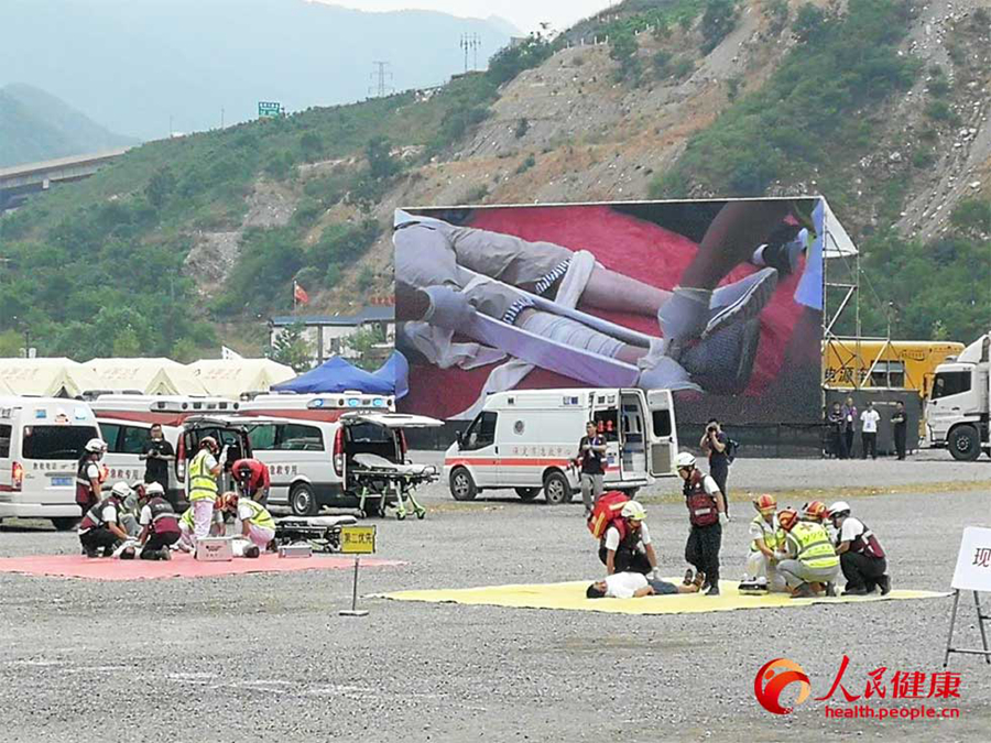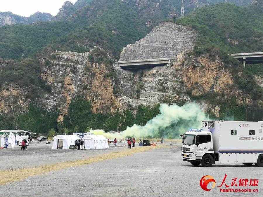 演練現(xiàn)場共調集緊急醫(yī)學救援、突發(fā)急性傳染病防控、突發(fā)中毒事件處置3類6支國家衛(wèi)生應急隊伍,動用制式衛(wèi)生應急車輛150余臺、模塊化醫(yī)療救治帳篷40余頂、救援直升機1架,共有京津冀22家醫(yī)療衛(wèi)生單位的330余人參加了演練。
