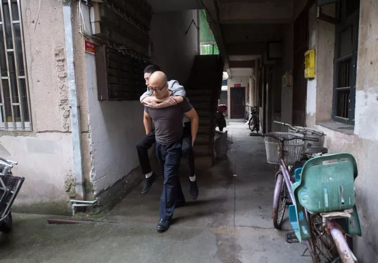 張海林背著吳元渺去參加愛(ài)心服務(wù)隊(duì)的公益活動(dòng)。