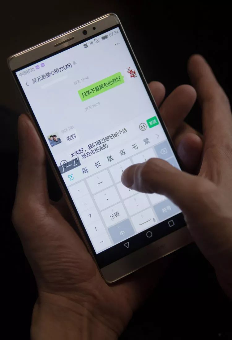 吳元渺在家中給愛(ài)心服務(wù)隊(duì)的志愿者們發(fā)信息,組織一場(chǎng)新的公益活動(dòng)。