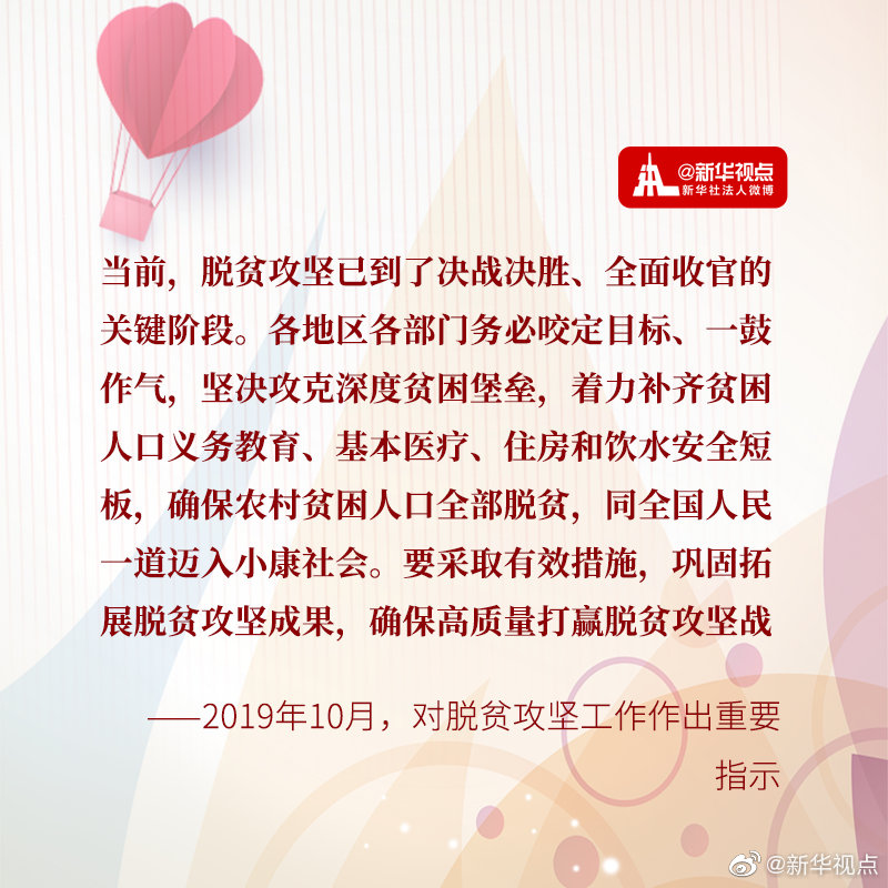 讓貧困人口和貧困地區(qū)同全國(guó)一道進(jìn)入全面小康社會(huì),是中國(guó)共產(chǎn)黨的莊嚴(yán)承諾,也是習(xí)近平總書(shū)記心里最牽掛的大事。當(dāng)前脫貧攻堅(jiān)戰(zhàn)進(jìn)入決勝的關(guān)鍵階段。在第六個(gè)國(guó)家扶貧日到來(lái)之際,讓我們一起學(xué)習(xí)總書(shū)記關(guān)于脫貧攻堅(jiān)的這些話?!?????