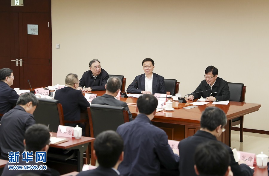 1月9日,中共中央政治局常委、國務(wù)院副總理韓正在國家醫(yī)療保障局召開座談會。 新華社記者 丁海濤 攝