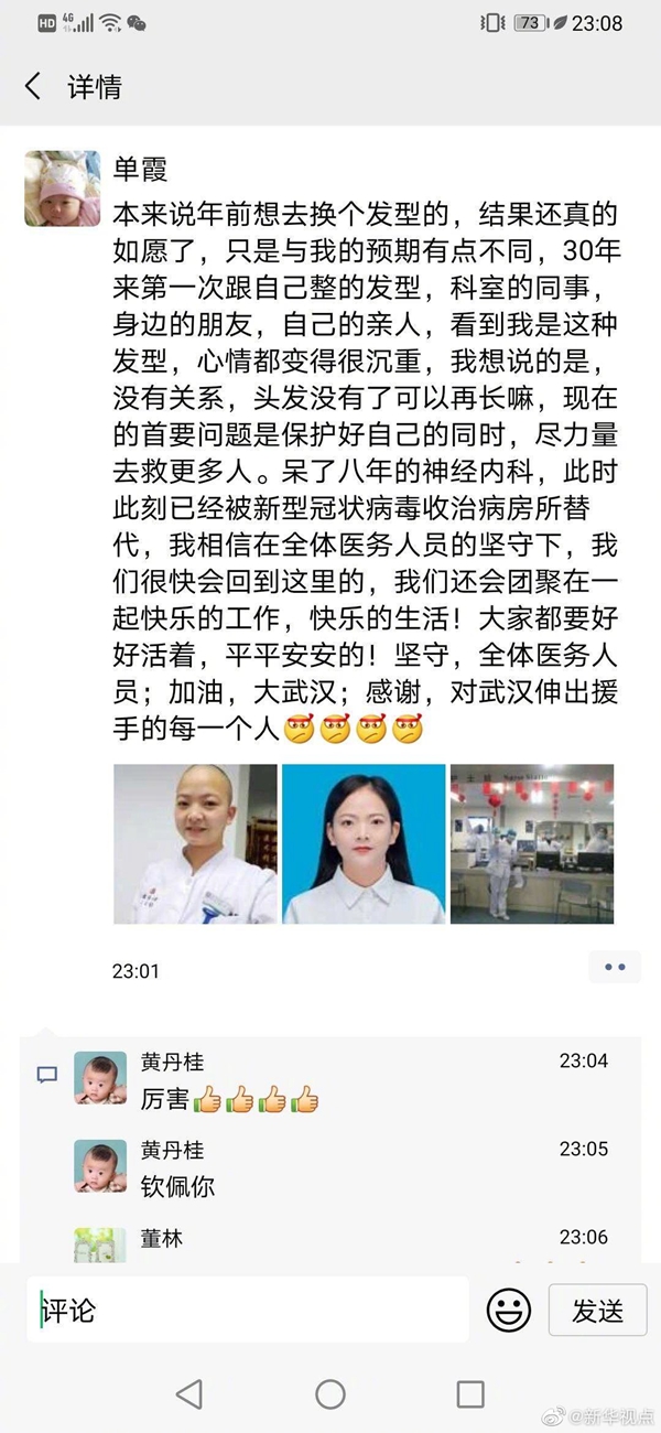 用我及腰長發(fā),換你健康平安:武漢人民醫(yī)院出了個(gè)“光頭護(hù)士”-新華網(wǎng)