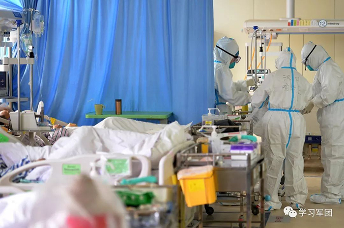 1月27日上午,海軍軍醫(yī)大學(xué)醫(yī)療隊(duì)醫(yī)護(hù)人員在漢口醫(yī)院重癥監(jiān)護(hù)室對(duì)新型冠狀病毒感染的肺炎患者進(jìn)行救治。醫(yī)護(hù)人員加強(qiáng)巡視,觀(guān)察輸液滴數(shù)。解放軍報(bào)記者范顯海攝