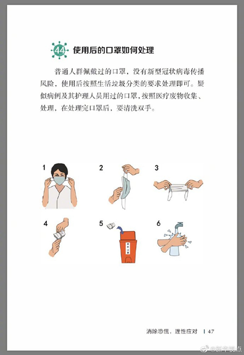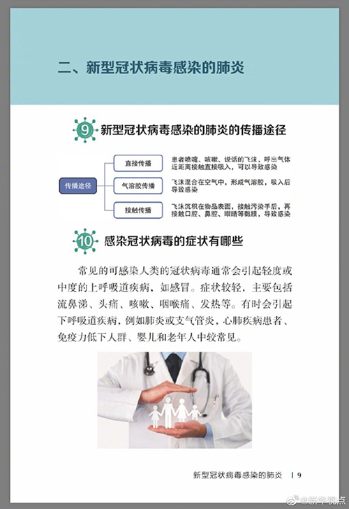中國疾病預(yù)防控制中心編寫的《新型冠狀病毒感染的肺炎公眾防護(hù)指南》,日前出版發(fā)行。此書聚焦公眾個人與家庭防護(hù)、居家醫(yī)學(xué)觀察、理性就醫(yī)、心理疏導(dǎo)等防治細(xì)節(jié),通過問答形式解讀新型冠狀病毒感染的肺炎有關(guān)問題疑惑,引導(dǎo)公眾正確認(rèn)識,積極做到防治結(jié)合、科學(xué)防護(hù)、消除恐慌、理性應(yīng)對。此書包括圖書、電子書、網(wǎng)絡(luò)版讀物等多種形式,第一批圖書已緊急送往武漢抗擊疫情第一線,電子書、網(wǎng)絡(luò)版讀物在學(xué)習(xí)強(qiáng)國、健康中國、人衛(wèi)健康、掌閱等多個網(wǎng)絡(luò)平臺、微信公眾號公益?zhèn)鞑ィ槿珖鞯靥峁┛捎≈频腜DF版本。(記者史競男;圖片來自《新型冠狀病毒感染的肺炎公眾防護(hù)指南》)