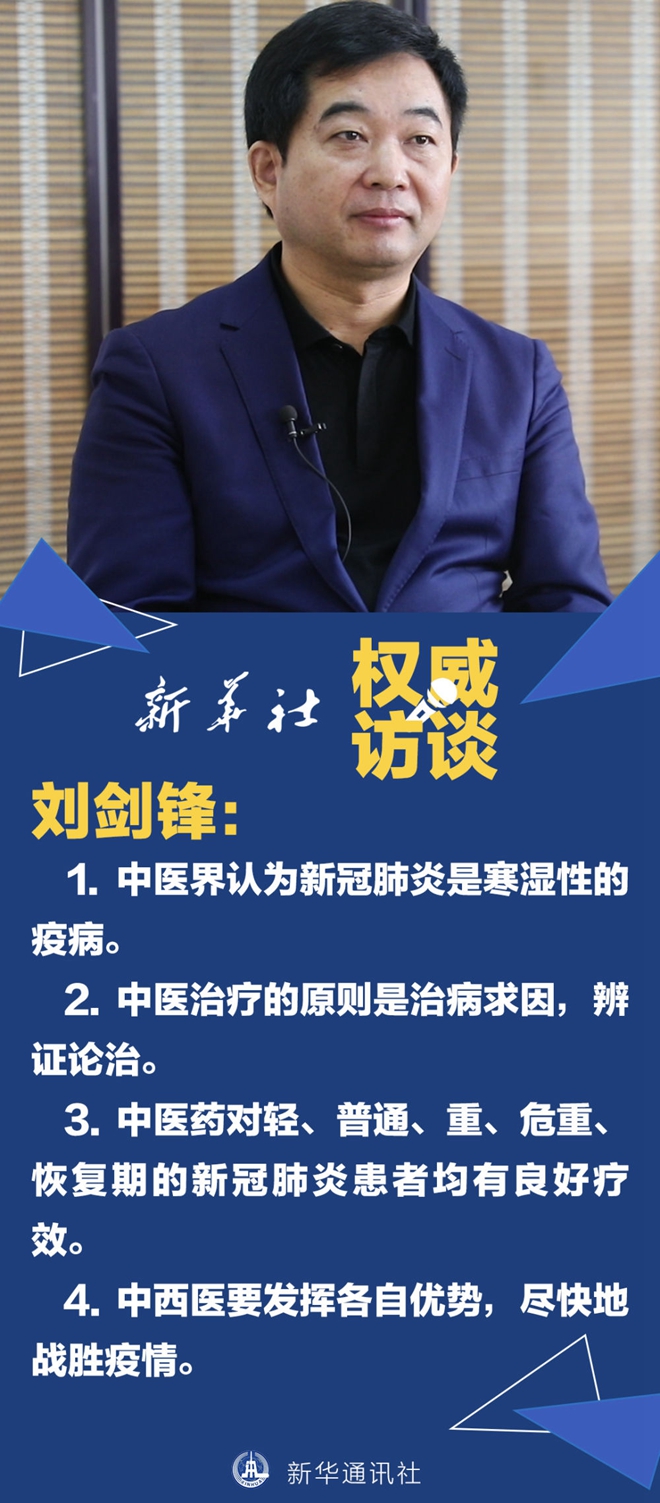 從中醫(yī)角度看,新冠肺炎的致病機(jī)理是什么?中醫(yī)藥在治療新冠肺炎患者過(guò)程中發(fā)揮了怎樣的作用?什么是“清肺排毒湯”?如何看待治療新冠肺炎過(guò)程中的中西醫(yī)結(jié)合?就這些問(wèn)題,新華社記者2月20日專(zhuān)訪了劉劍鋒,一起來(lái)了解一下吧!