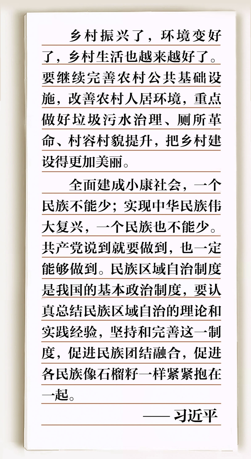 習(xí)近平總書記指出:“各族人民親如一家,是中華民族偉大復(fù)興必定要實(shí)現(xiàn)的根本保證?!瘪R鞍山村脫貧攻堅(jiān)動(dòng)力不竭,村民生活蒸蒸日上,既源于黨和政府的好政策,更是因?yàn)楦髯迦罕娡耐?、同心同向。這也啟示我們:56個(gè)民族攜手同行,像石榴籽一樣緊緊抱在一起,鑄牢中華民族共同體意識(shí),就能形成勇往直前、無(wú)堅(jiān)不摧的強(qiáng)大力量。