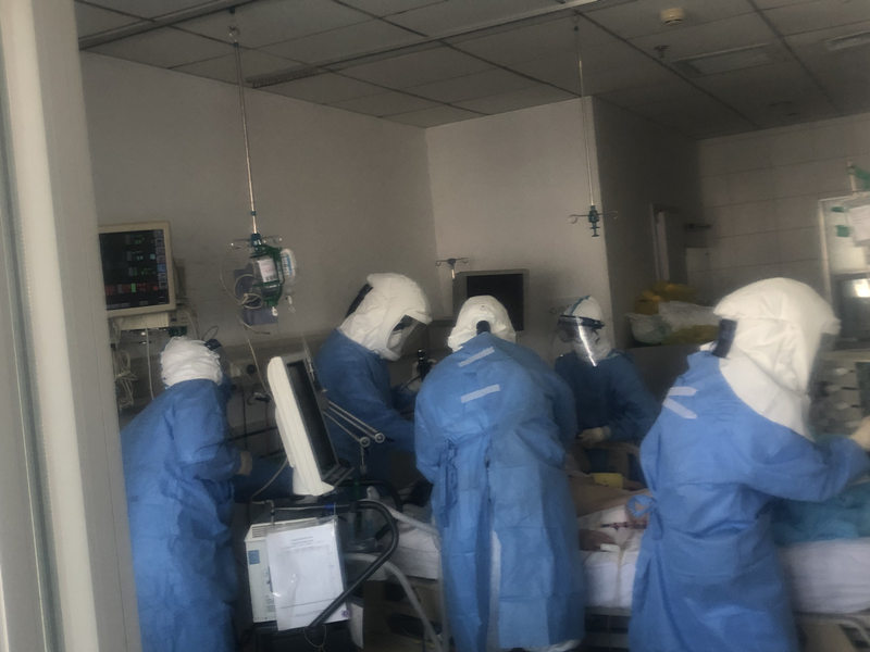 孫兵開始夜以繼日地沖鋒在一線,與死神“角力”。每天早晨,孫兵早早就坐在查房室開始查房,從呼吸機(jī)機(jī)械通氣策略到ECMO并發(fā)癥的預(yù)防,從抗生素的選擇到出入量目標(biāo)管理,從鎮(zhèn)靜鎮(zhèn)痛到血栓預(yù)防,從營養(yǎng)支持到血糖控制,孫兵為每一名患者制定了全面而細(xì)致的治療方案,同時(shí),根據(jù)每名患者不同情況提出明確而嚴(yán)格的目標(biāo)要求。查房后,他依然要穿上防護(hù)服進(jìn)入隔離病房進(jìn)行查體、吸痰和具體指導(dǎo),直到下午1點(diǎn)左右才能出來吃午飯。下午3點(diǎn)與專家討論結(jié)束后,再次進(jìn)入隔離病房,查體、吸痰、操作,檢查治療方案是否落實(shí)、目標(biāo)是否達(dá)到,直到晚上8點(diǎn)多才出來。晚上9點(diǎn)多回到酒店后,他的工作尚不能結(jié)束,他還要總結(jié)、反思患者的各項(xiàng)治療與效果。