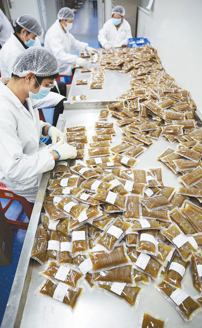 3月2日,湖北武漢一家中藥公司,工人正在為灌裝好的中藥貼上標(biāo)簽。據(jù)悉,該公司在疫情期間,按照國家衛(wèi)生健康委辦公廳和國家中醫(yī)藥管理局辦公室聯(lián)合印發(fā)的《新型冠狀病毒肺炎診療方案(試行第六版)》中推薦的藥方,為武漢市7家醫(yī)院、10個(gè)方艙醫(yī)院等單位生產(chǎn)、煎煮和配送中藥湯劑。記者 張武軍攝