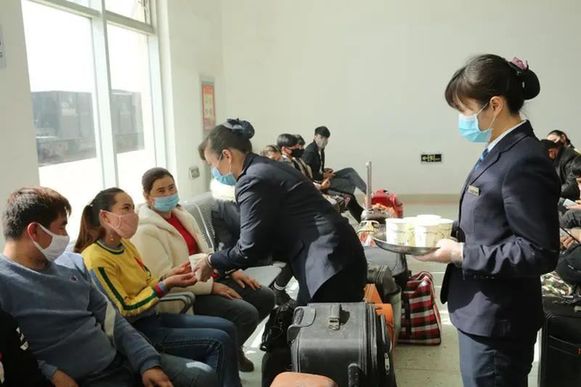 在列車上,庫爾勒客運(yùn)段設(shè)置了隔離室,每2小時(shí)對(duì)務(wù)工人員測(cè)溫,增加對(duì)列車內(nèi)部設(shè)施設(shè)備消毒頻次,列車廣播循環(huán)播放新冠肺炎預(yù)防知識(shí)宣傳,確保務(wù)工人員順利抵達(dá)目的地。
