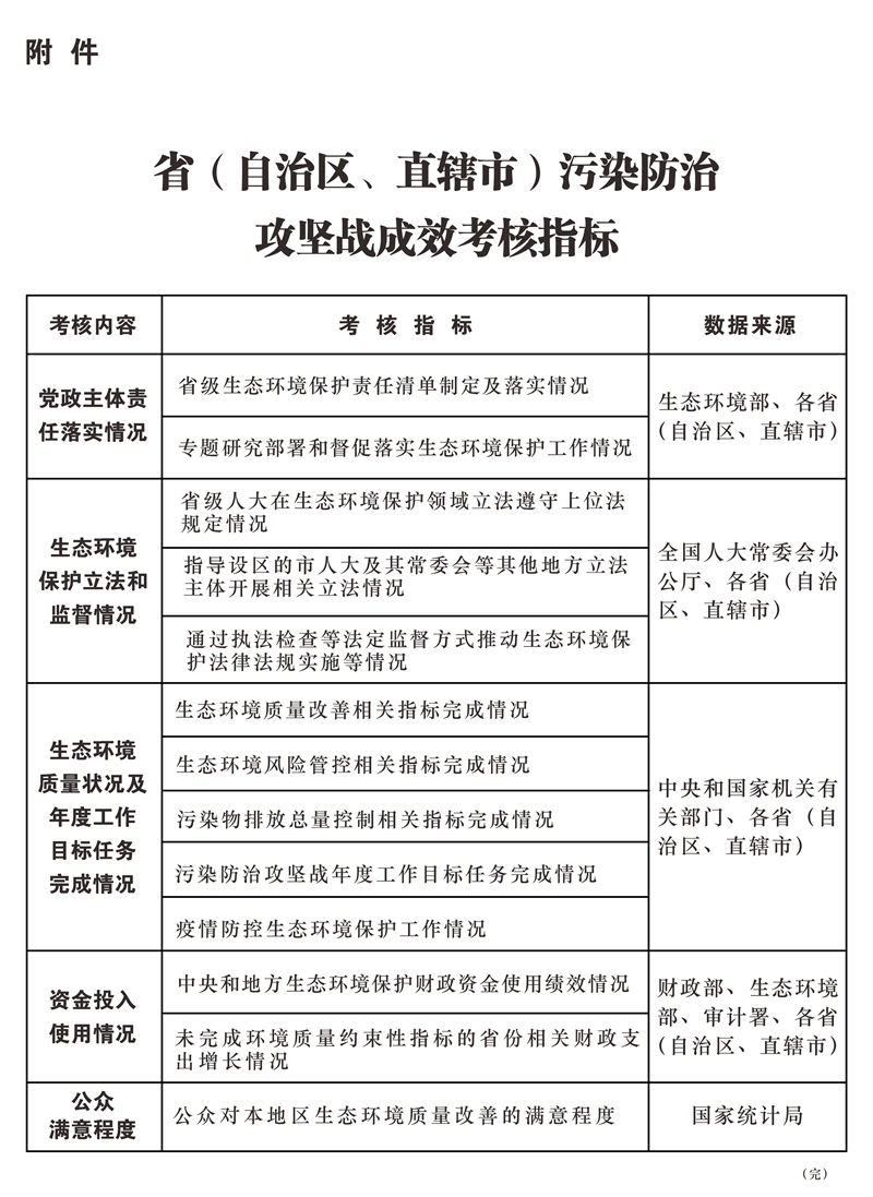 附件:?。ㄗ灾螀^(qū)、直轄市)污染防治攻堅戰(zhàn)成效考核指標(biāo)