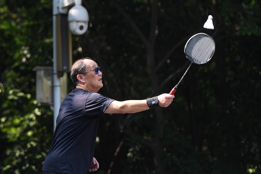 5月3日,一位市民在合肥市環(huán)城公園內打羽毛球。 當日是“五一”假期第三天,合肥市民紛紛來到戶外,健身休閑,樂享假期。 新華社記者 張端 攝