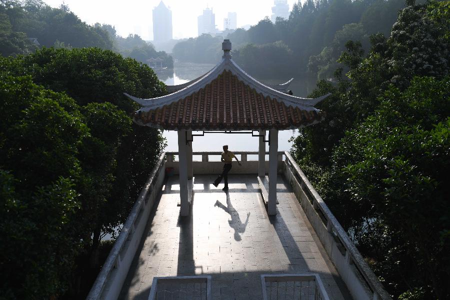 5月3日,市民在合肥市環(huán)城公園內晨練。 當日是“五一”假期第三天,合肥市民紛紛來到戶外,健身休閑,樂享假期。 新華社記者 張端 攝