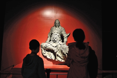 觀眾觀看明代關(guān)公坐像,河南新鄉(xiāng)博物館藏。本組稿件攝影/新京報(bào)記者 浦峰