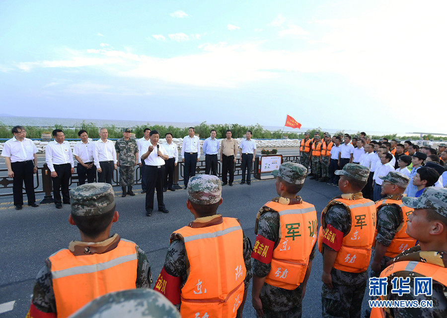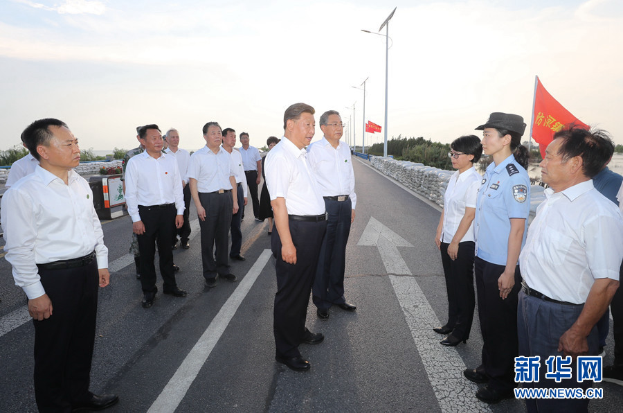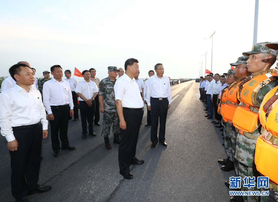 大堤上,習(xí)近平親切看望慰問了在防汛抗洪救災(zāi)斗爭中犧牲同志的家屬、防汛抗洪一線人員、先進(jìn)典型代表和參加抗洪搶險的部隊官兵,并向全國奮戰(zhàn)在防汛抗洪救災(zāi)一線的同志們表示誠摯的問候。他強調(diào),今年入汛以來,南北方江河湖泊接連出現(xiàn)超警戒水位險情。廣大干部群眾和人民解放軍、武警官兵堅決響應(yīng)黨和政府號召,發(fā)揚不怕累苦、不怕疲勞、不怕犧牲的精神斗志,堅守在防汛抗洪救災(zāi)第一線,涌現(xiàn)了許多先進(jìn)典型和感人事跡,展現(xiàn)了中國人民眾志成城、頑強拼搏、敢于勝利的英雄氣概,書寫了洪水無情人有情的人間大愛。黨和人民感謝你們!