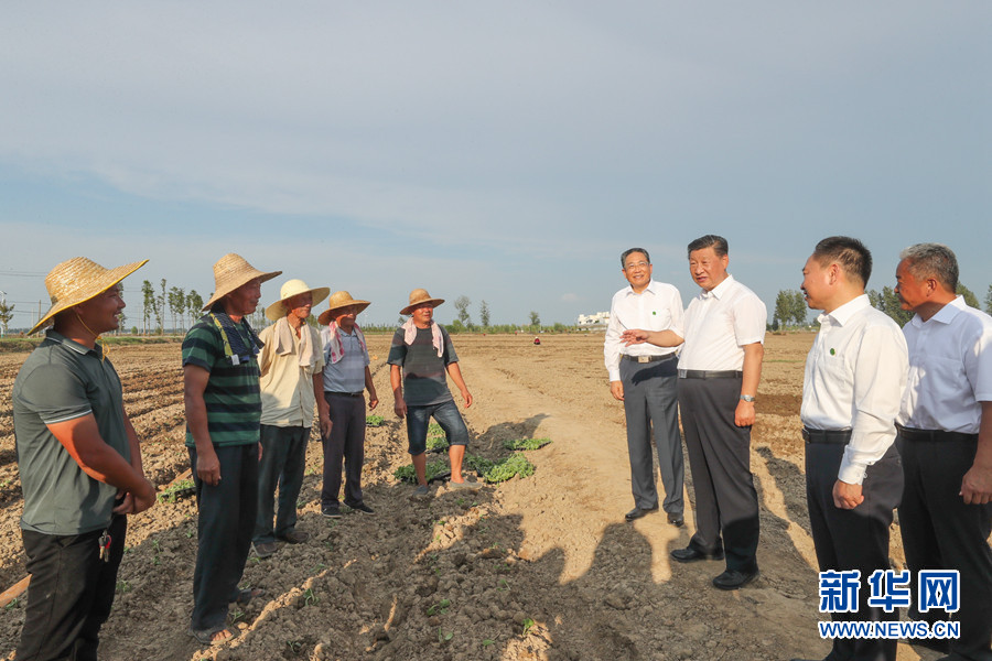 8月18日至21日,中共中央總書記、國家主席、中央軍委主席習(xí)近平在安徽省考察。這是18日下午,習(xí)近平在阜陽市阜南縣蒙洼蓄洪區(qū),同正在退水地塊補種蔬菜的鄉(xiāng)親們親切交流。 新華社記者 鞠鵬 攝