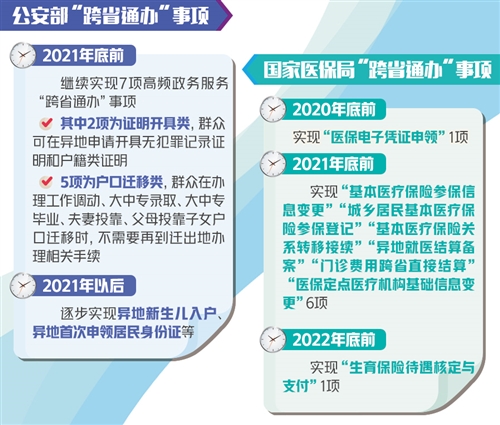 按照《意見》要求,140項(xiàng)高頻事項(xiàng)中,包括市場(chǎng)主體登記注冊(cè)、養(yǎng)老保險(xiǎn)關(guān)系轉(zhuǎn)移接續(xù)等在內(nèi)的第一批58項(xiàng)“跨省通辦”事項(xiàng)要在2020年底前實(shí)現(xiàn),工業(yè)產(chǎn)品生產(chǎn)許可證發(fā)證、異地就醫(yī)結(jié)算備案等74項(xiàng)要在2021年底前實(shí)現(xiàn),后續(xù)還將加快實(shí)現(xiàn)婚姻登記、社會(huì)保險(xiǎn)參保繳費(fèi)記錄查詢等8項(xiàng)事項(xiàng)的異地辦理。