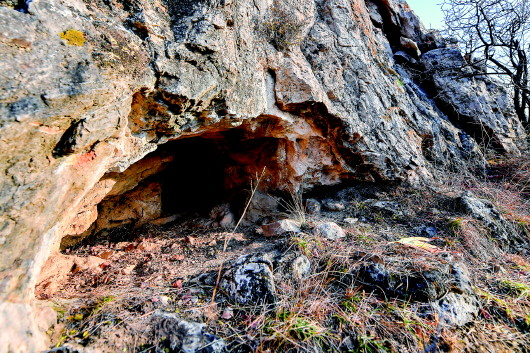 這次3個(gè)老鄉(xiāng)帶路,換路而行。路程明顯縮短,但卻十分陡峭。有的石階僅容一只腳,兩只手也只能扒著峭壁,而身后就是懸崖。攀爬一個(gè)多小時(shí)后,一個(gè)山洞映入眼簾。