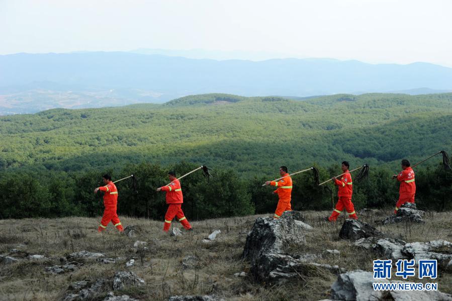 貴州省威寧縣觀風(fēng)海鎮(zhèn)沙子坡林場的護(hù)林員在林區(qū)進(jìn)行火險巡查(2018年3月10日攝)。新華社記者 楊文斌 攝