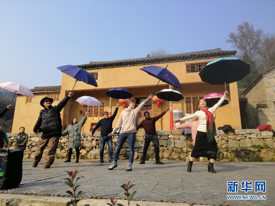 這是2020年12月19日,植國明、肖恩、瑞貝卡·尼什、烏俊杰與村民們一起練習(xí)舞蹈,迎接新年。新華社記者 劉方強攝