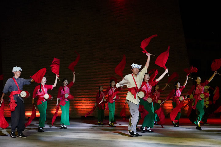 2025年7月29日,演员在位于陕西延安的金延安文化旅游产业园区表演红色歌舞剧《延安十三年》。新华社记者 樊雨晴 摄