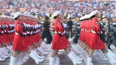 當(dāng)天上午10時(shí)許,雄壯的樂(lè)曲聲中,習(xí)近平乘坐紅旗牌檢閱車(chē),沿長(zhǎng)安街向東,依次檢閱了地面徒步方隊(duì)和裝備方隊(duì)。