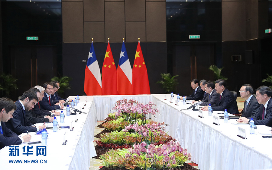 習(xí)近平指出,智利是第一個同新中國建交的南美洲國家,中智關(guān)系長期走在中拉關(guān)系前列。新形勢下,我們要繼續(xù)推動中智合作再上新臺階。我祝賀你第二次擔(dān)任智利總統(tǒng),相信在我們共同引領(lǐng)下,中智全面戰(zhàn)略伙伴關(guān)系一定會開創(chuàng)新局面,實現(xiàn)新發(fā)展,為提升中拉整體合作作出更大貢獻。