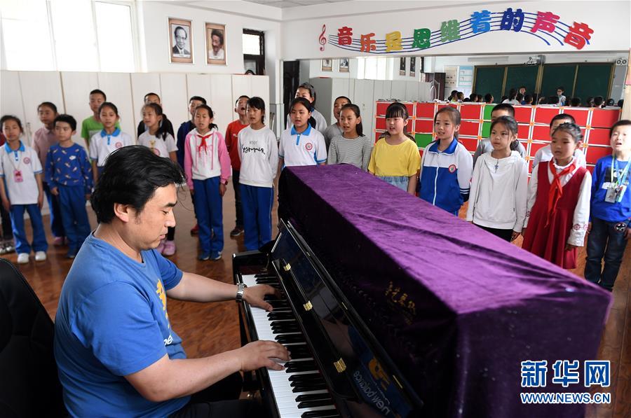 陜西省延安市楊家?guī)X福州希望小學合唱社團的學生在進行合唱(4月24日攝)。新華社記者 劉瀟 攝