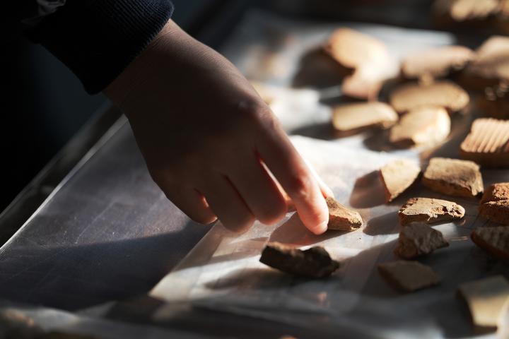 2025年10月23日,工作人员在位于辽宁朝阳的牛河梁工作站分拣陶片。作为红山文化分布的核心区,1981年,牛河梁遗址的发现,吸引了世界的目光,超过5000年的测年数据为中华五千年文明史提供了证据。2003年牛河梁遗址第十六地点发掘成果获评“全国十大考古新发现”。