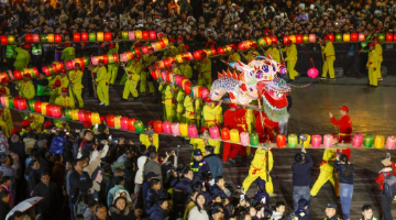 3月2日,龙灯队在重庆市秀山土家族苗族自治县西街巡游。