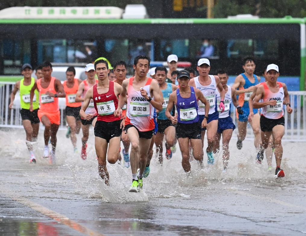 2021年9月26日,何杰在第十四届全运会田径项目男子马拉松比赛中。新华社记者 宋彦桦 摄