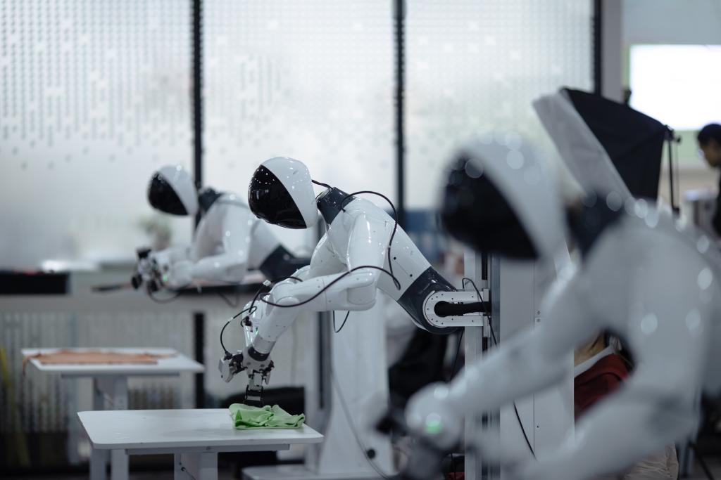 这是机器人在智元的数采中心训练。(智元机器人供图)