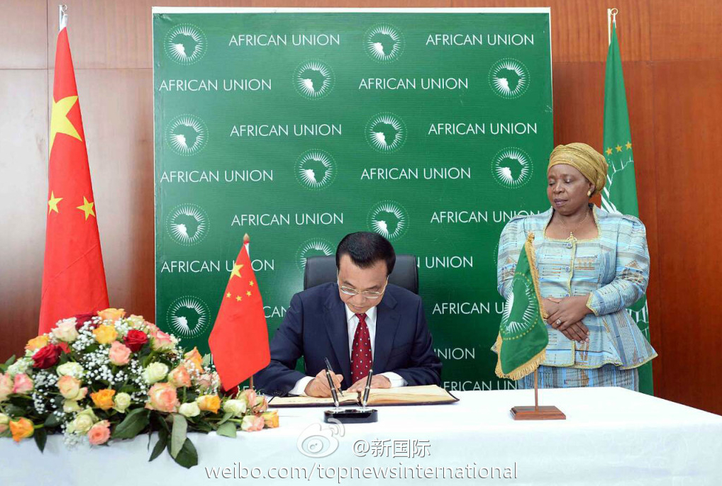 5日上午,李克強在非盟委員會副主席姆溫查陪同下參觀了非盟會議中心。參觀結(jié)束后,應(yīng)非盟委員會主席祖馬邀請,李克強在貴賓簿上題詞。