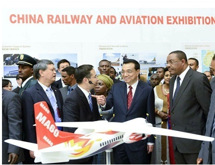 ????新華網(wǎng)北京5月6日電 據(jù)新華社“新國際”微博報道,中國鐵路航空展5日在非盟會議中心舉行,李克強總理及夫人程虹、埃塞俄比亞總理海爾馬里亞姆夫婦、非盟委員會主席祖馬等共同參觀。李克強說,這些裝備是中國自主研發(fā),適合非洲國家需求,中國愿同非洲國家分享技術(shù)、培訓(xùn)、管理經(jīng)驗,幫助非洲實現(xiàn)世紀夢想。