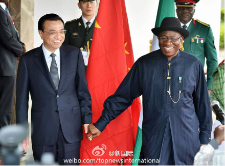 ????新華網(wǎng)北京5月7日電 據(jù)新華社“新國際”微博報道,7日,國務院總理李克強在與尼日利亞總統(tǒng)喬納森共見記者時表示,尼政府和人民高度重視鐵路等基礎設施建設,中方在這方面有雄厚實力和成熟的技術經(jīng)驗,愿積極參與尼沿海鐵路等基礎設施項目建設,并與尼方開展融資合作,實現(xiàn)互利雙贏,造福兩國人民。